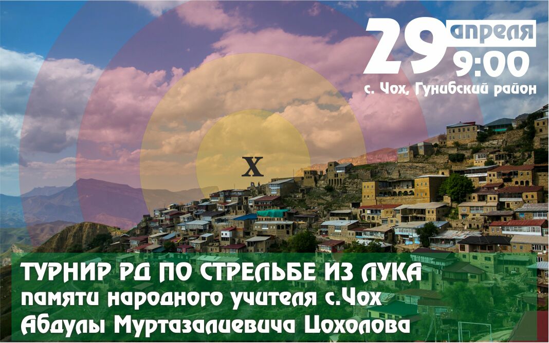 29 апреля дагестанская федерация стрельбы из лука "Шёлковый Путь" по инициативе семьи Цохоловых, совместно с Администрациями села Чох и Гунибского района, Молодёжной общественной организацией "Чох" приглашает всех желающих на ежегодный Республиканский турнир "Стрелы Андалала".