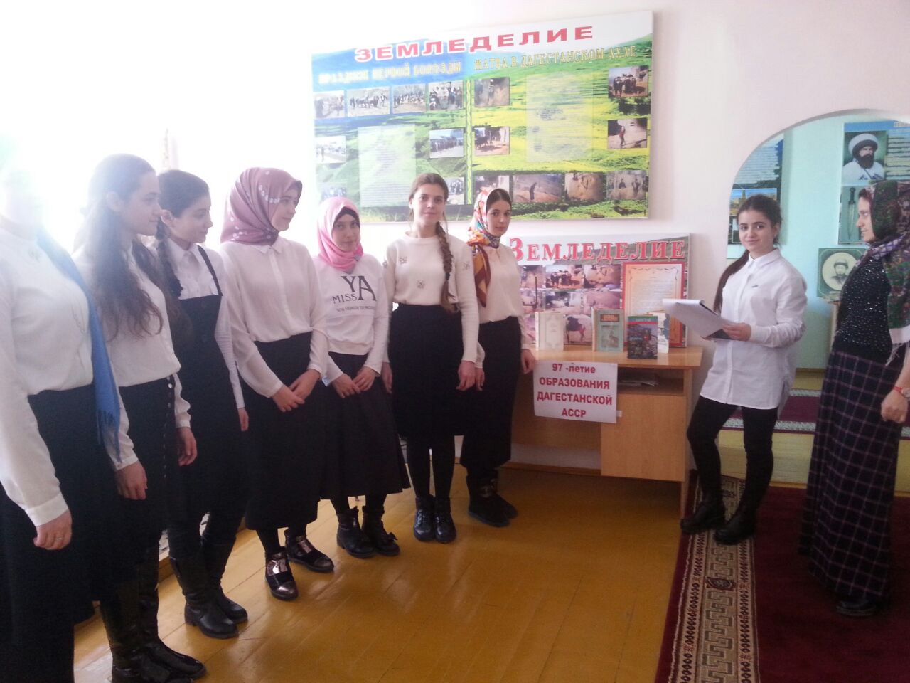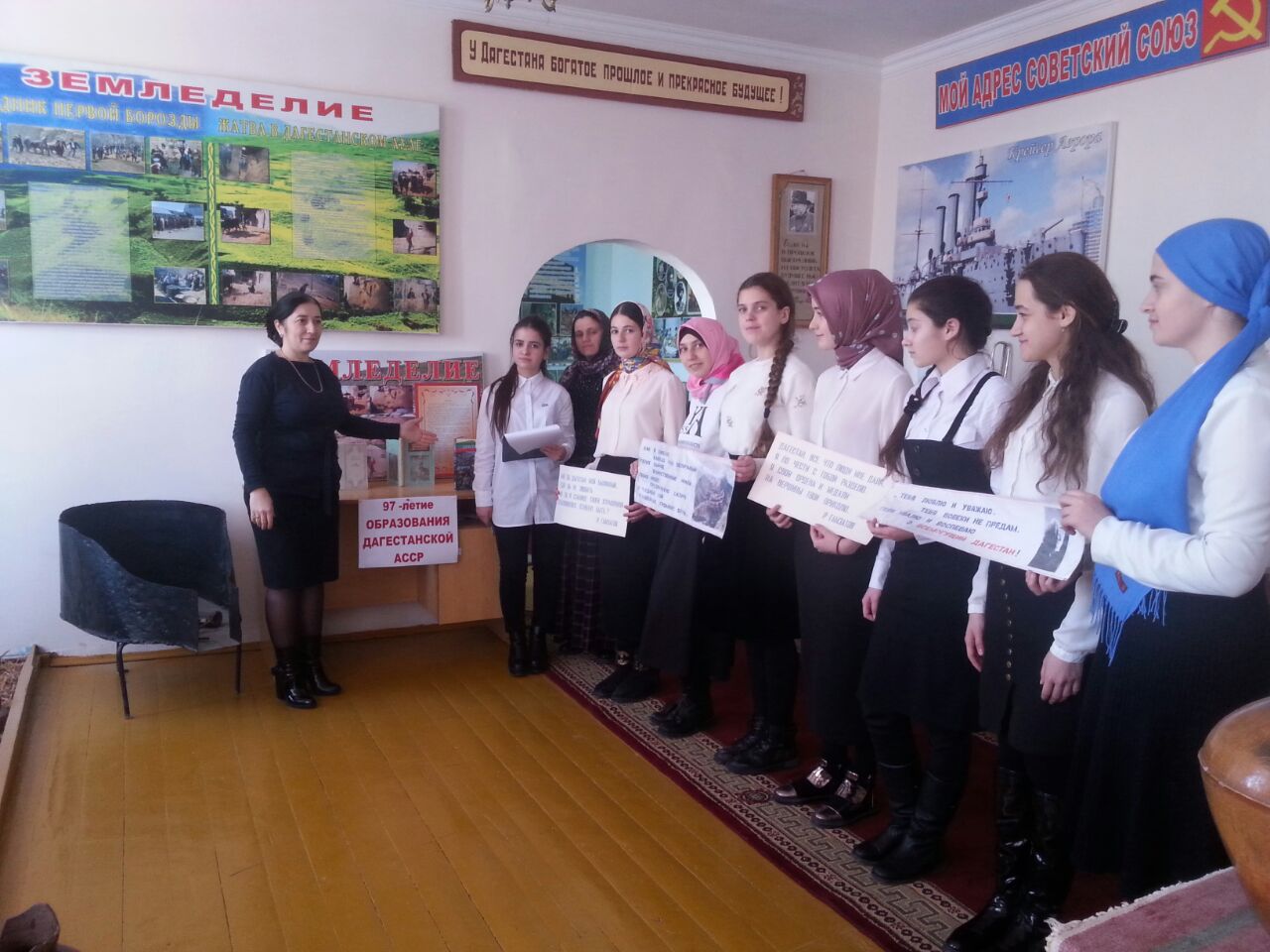 22 января в школьном музее селения Комсомольское проведено совместное мероприятие, посвященное дню рождения нашей республики. Организатором мероприятия выступили заведующая библиотекой селения Комсомльское Магомедова Патимат и директор музея Шигабудинова Маржанат.