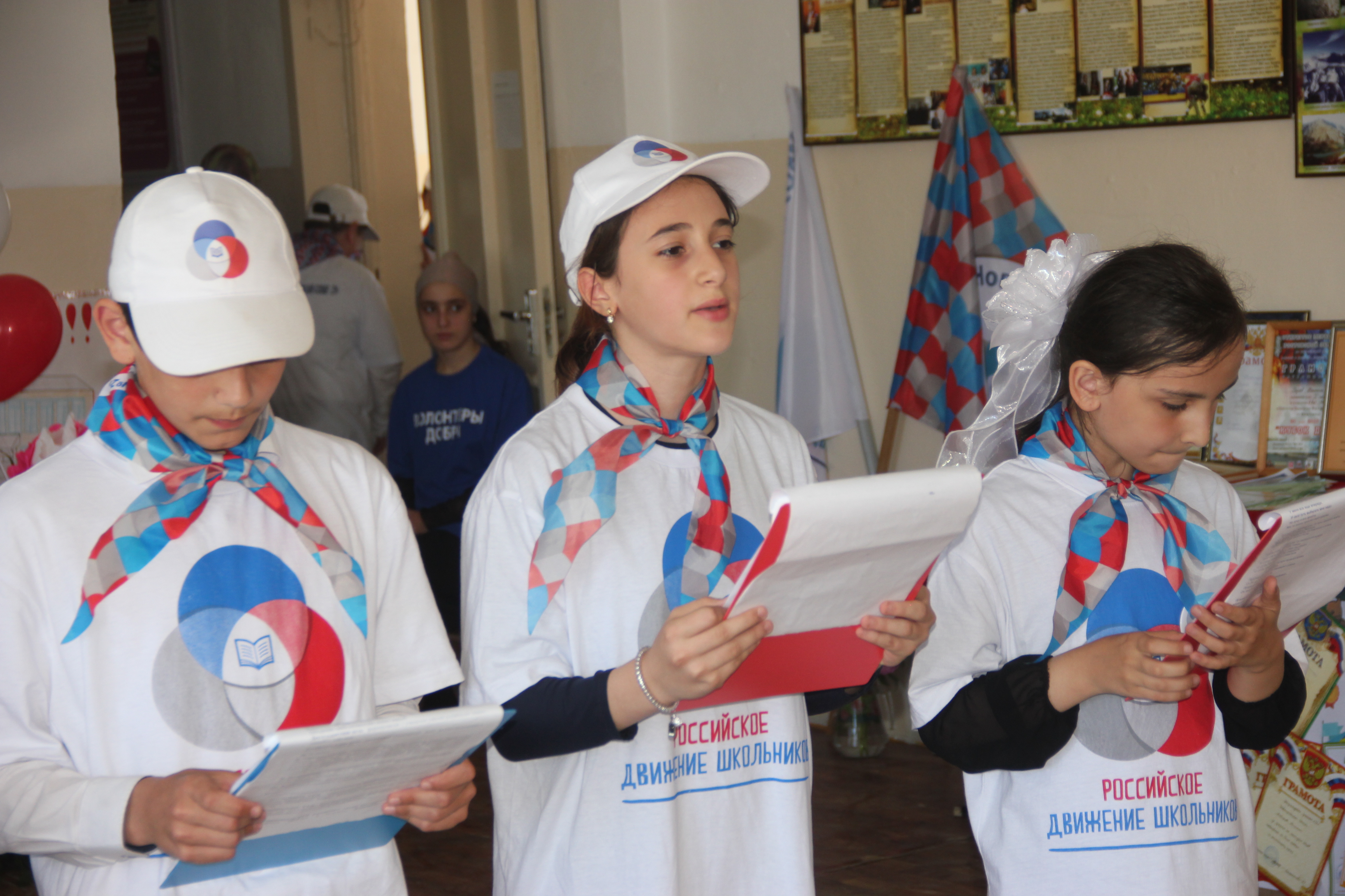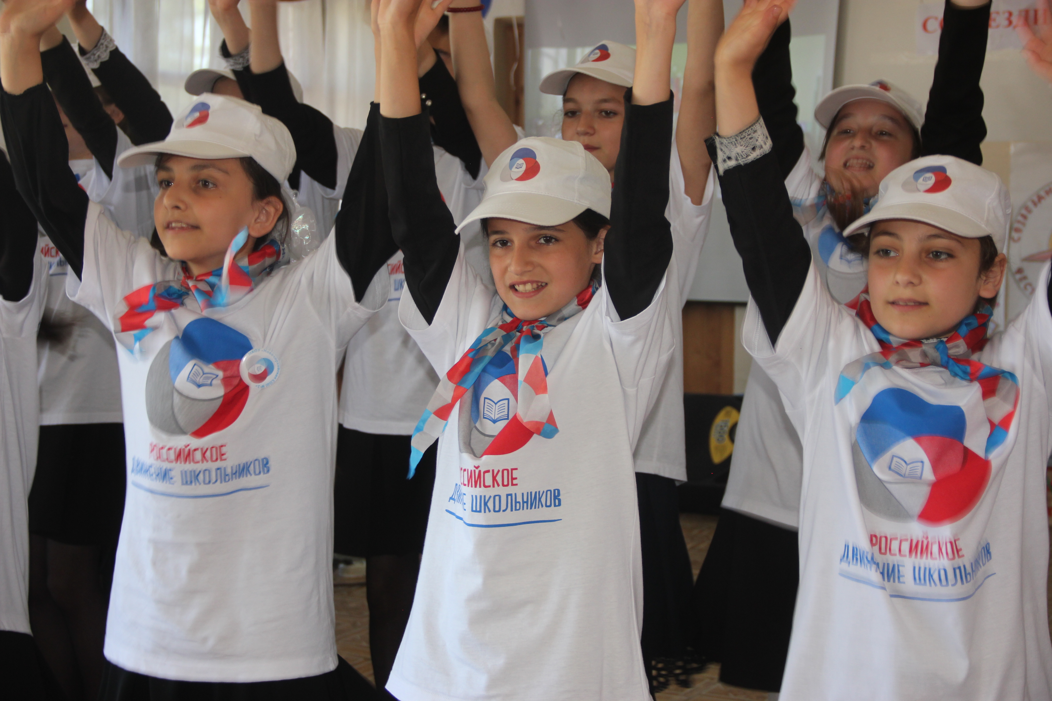 Последовало выступление участников «Российского движения школьников». Они исполнили его гимн и представили коллективный танец.