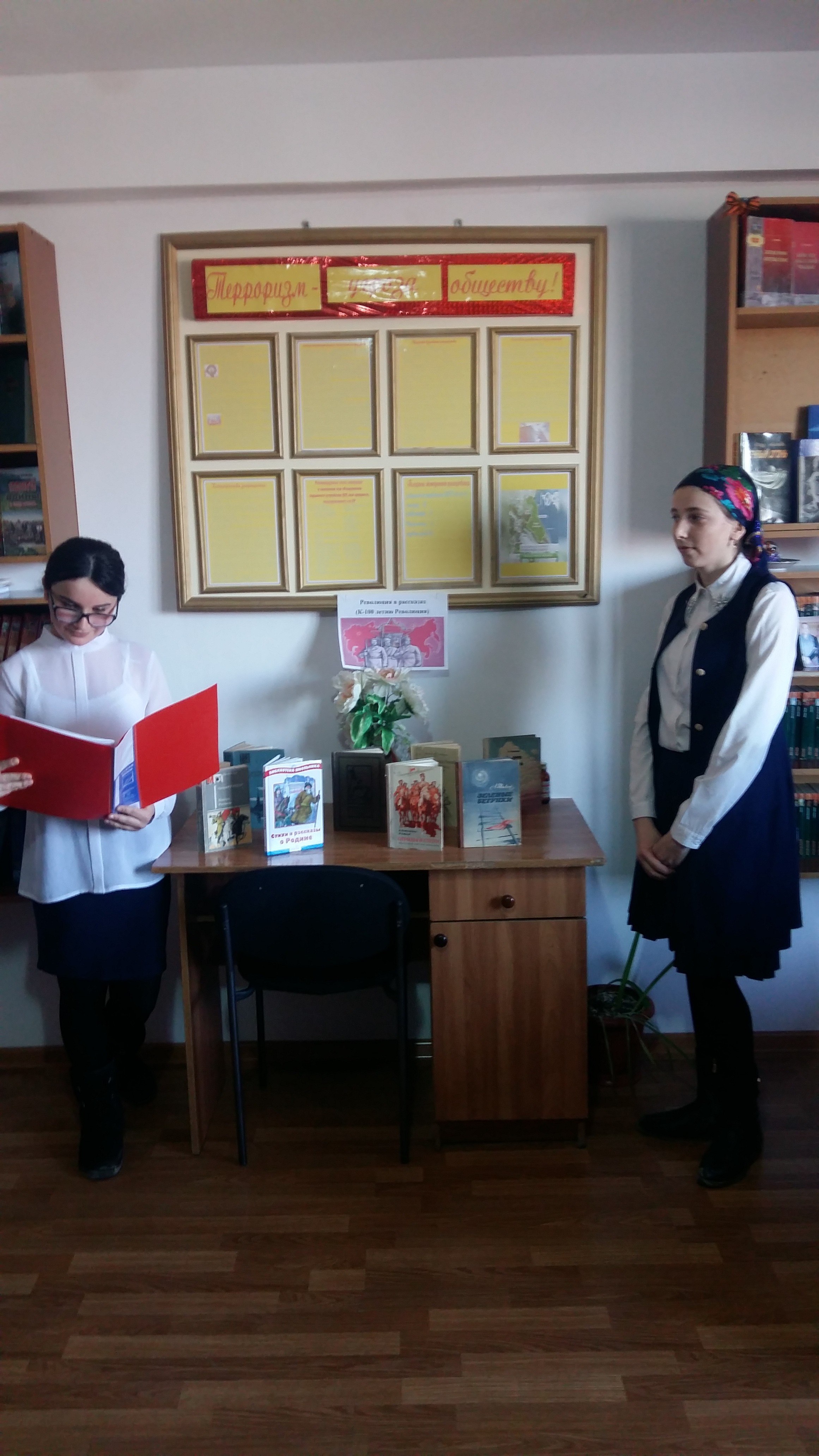 В централизованной районной библиотеке накануне прошла беседа у книжной выставки на тему «Революция в рассказах» к 100 - летию Великой октябрьской революции. Присутствовали 12 читателей.