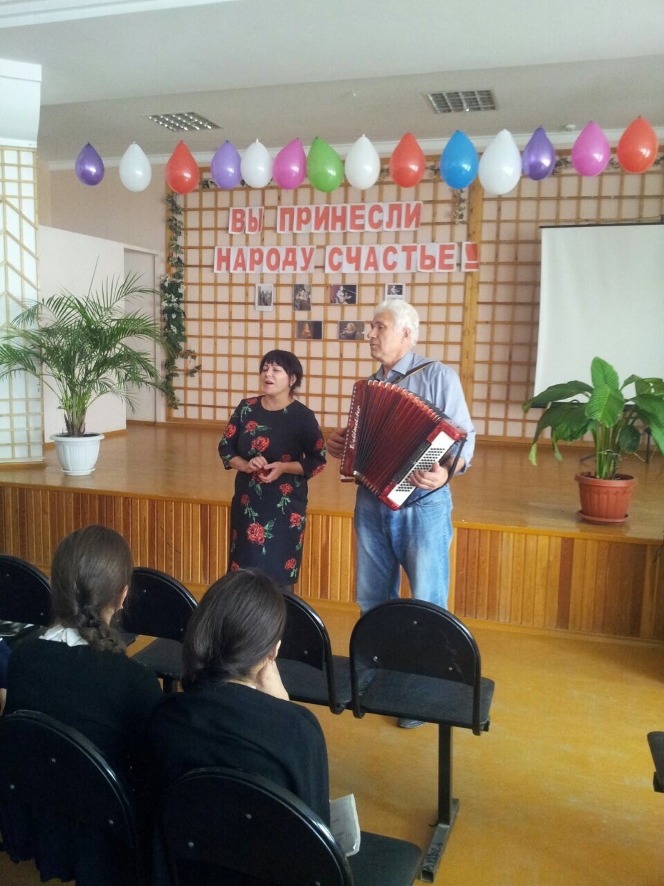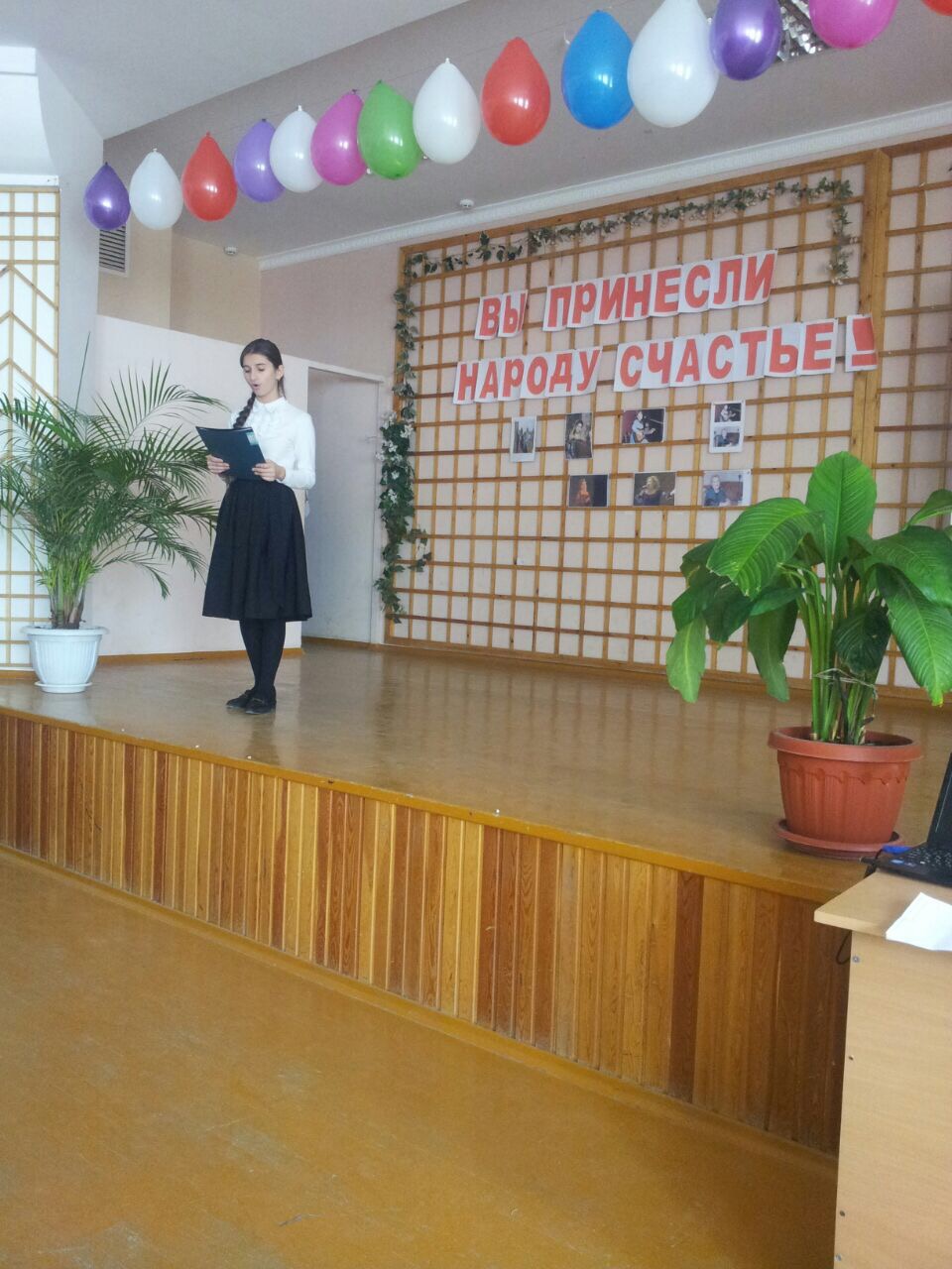 Работники межмуниципального культурно – досугового центра вместе с коллективом школы украсили актовый зал портретами и книгами Ибрагимовой.