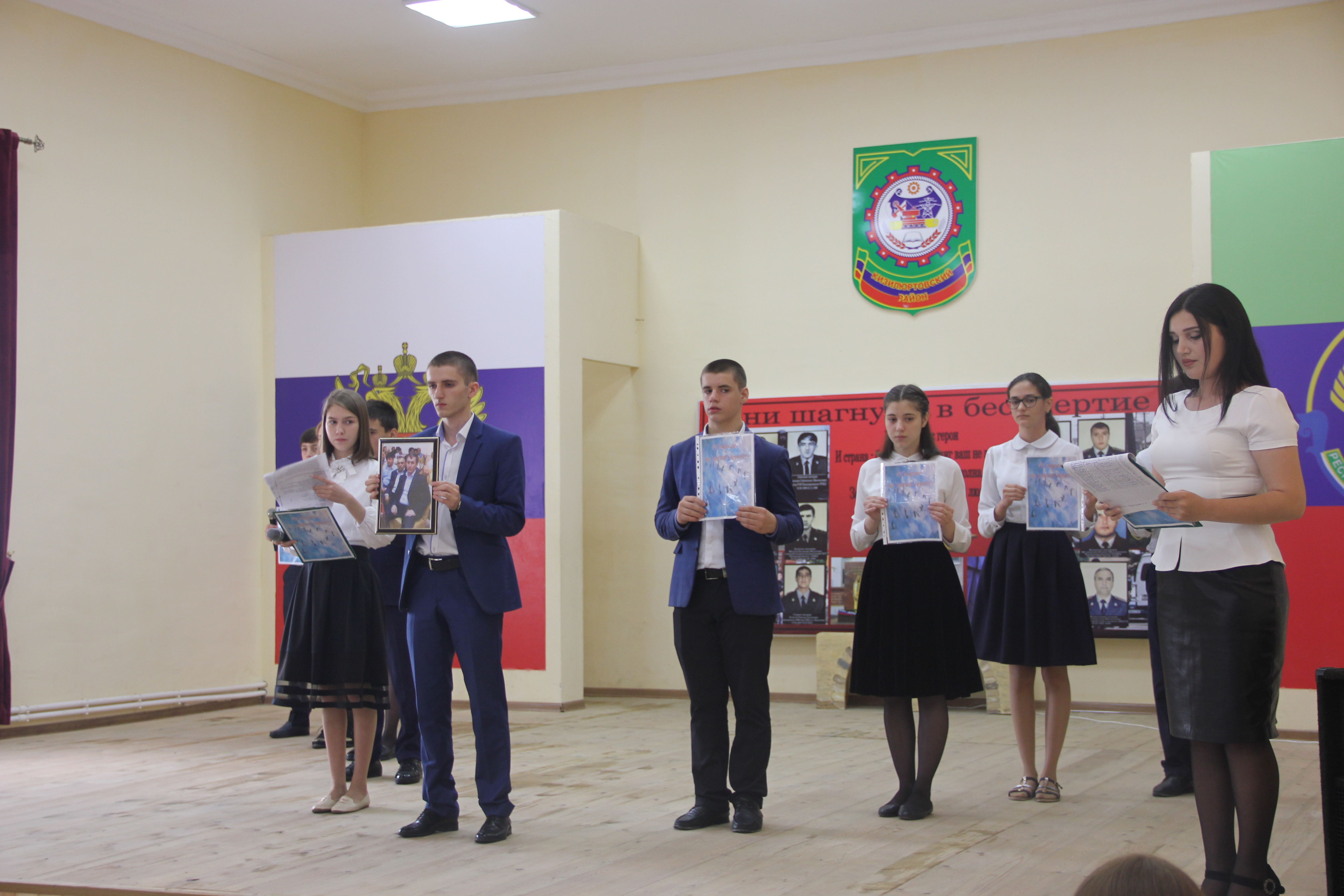 В селении Зубутли-Миатли на Урок мужества школьники пригласили официальных лиц и сослуживцев Магомеда Мусаева, погибшего во время боевой операции