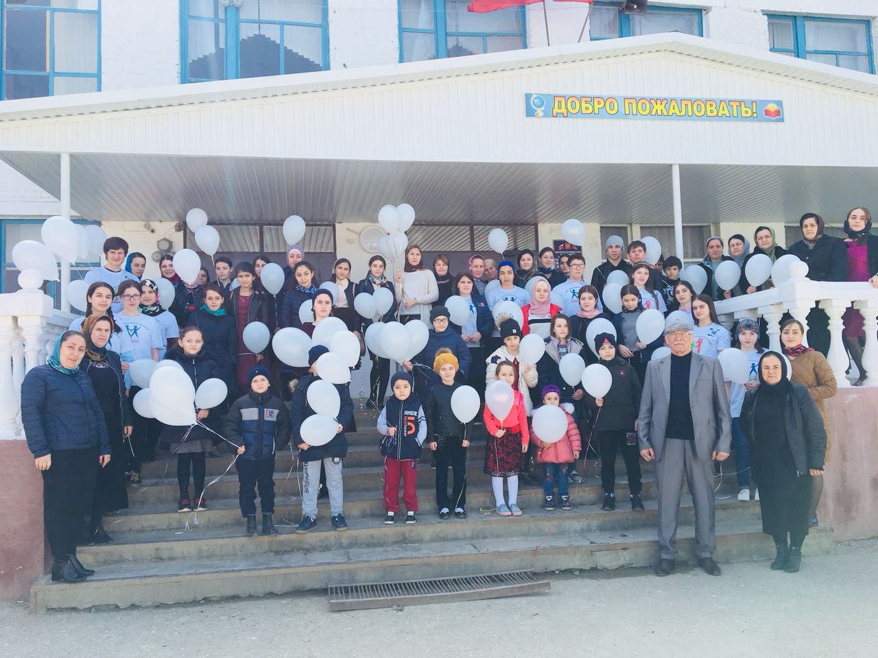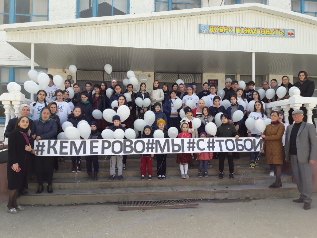 Сегодня, 28 марта, учащиеся Зубутли-Миатлинской школы вместе с учителями, родителями и администрацией села выпустили в небо десятки белых шаров в память о жертвах страшного пожара в Кемерово, в котором погибло более 60 человек.