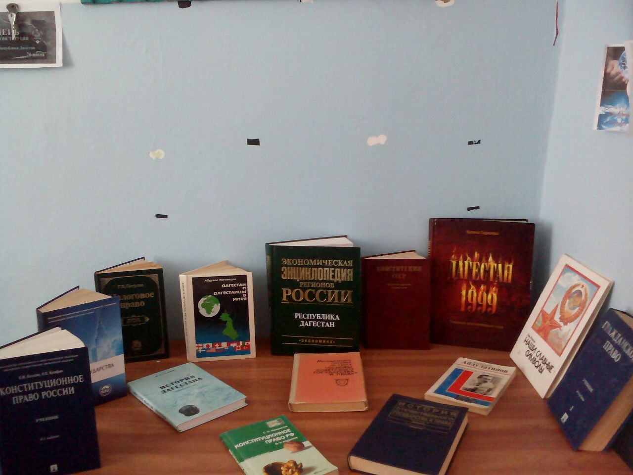 На экспозиции представлены книги, темы которых - права и обязанности граждан РД, а также государственно – правовое строительство в республике и основные события, связанные с формированием государственности народов Дагестана.