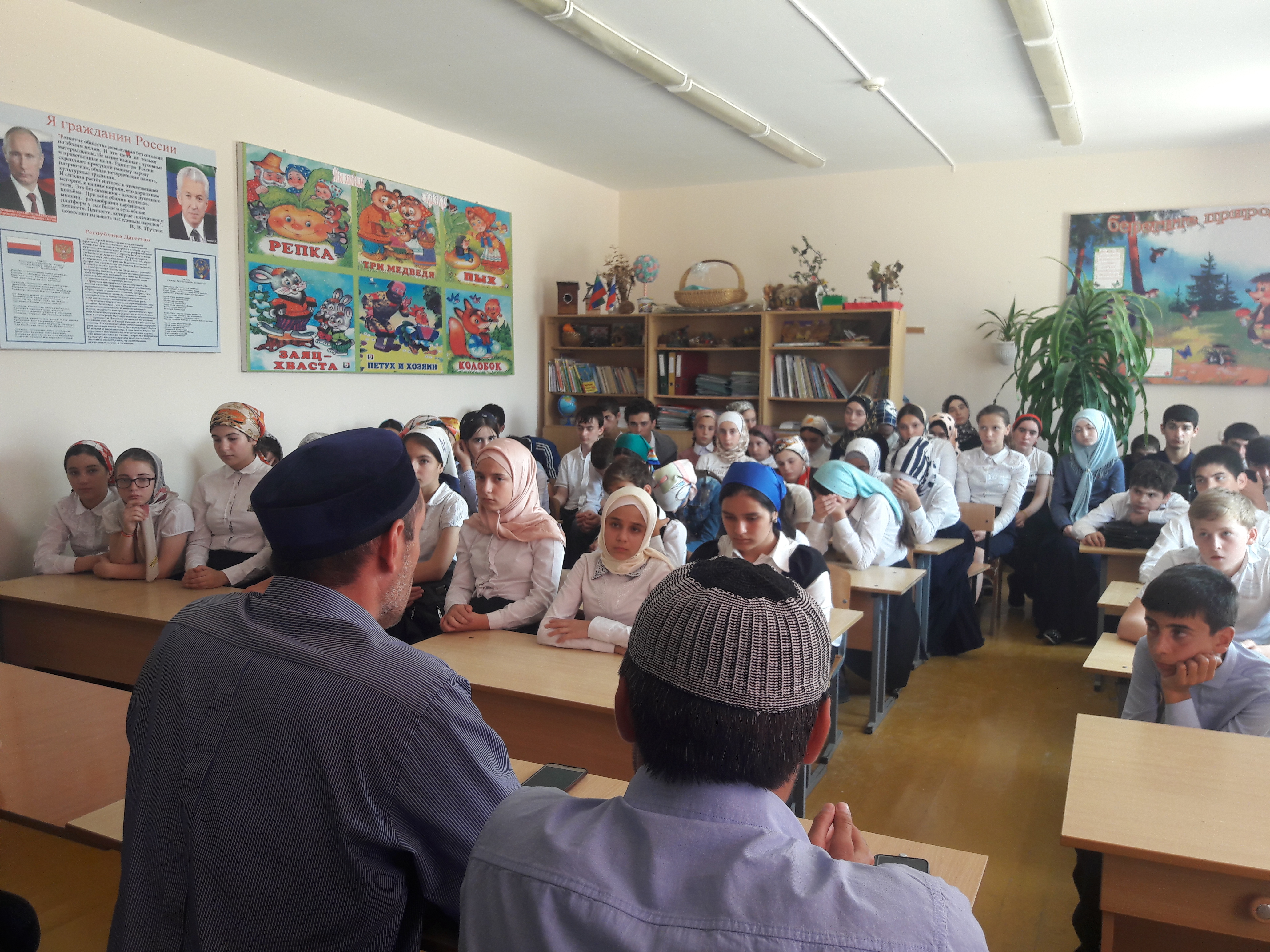 22 мая в Гельбахской СОШ состоялась встреча школьников с руководителем отдела просвещения Муфтията РД по Кизилюртовскому району Абдулой Сайпудиновым, имамом села Тажудином Абдулаевым, главой селения Гельбах Даци Агаевым и специалистом аппарата АТК Кизилюртовского района Расулом Мусаевым. Гости рассказали детям об опасности, грозящей им со стороны лжепросветителей, и многочисленных способах вовлечения их в экстремистские и террористические сети, сплетенные специально с целью вовлечения в них молодых людей.
