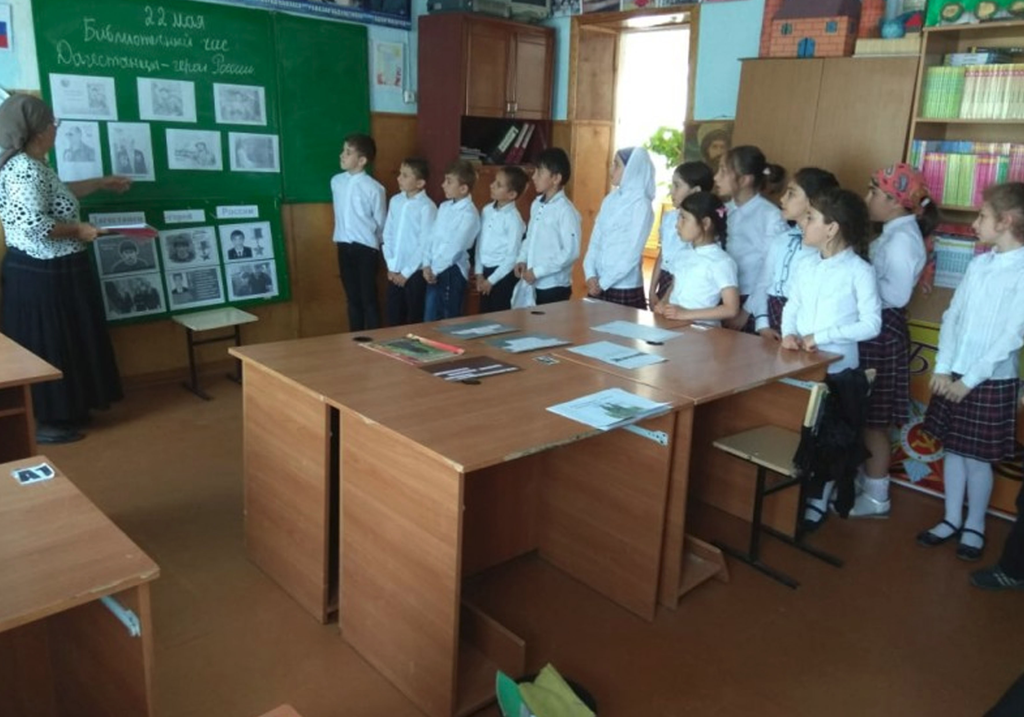 22 мая прошел библиотечный час о дагестанцах - Героях России. Школьный библиотекарь З. Исаева подготовила доклад о героях-дагестанцах: Магомеде Нурбагандове, Магомеде Толбоеве, Мусе Манарове. Рассказала о подвигах, которые они совершили, о званиях и наградах. Ученики с большим интересом слушали доклад и активно включились в беседу о мужестве и чести.