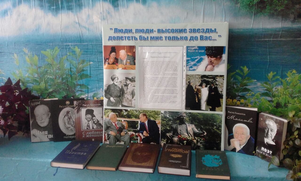 В библиотеке с. Шушановка оформлена книжная выставка, посвященная творчеству Расула Гамзатова - «Люди, люди – высокие звезды, долететь бы мне только до вас».