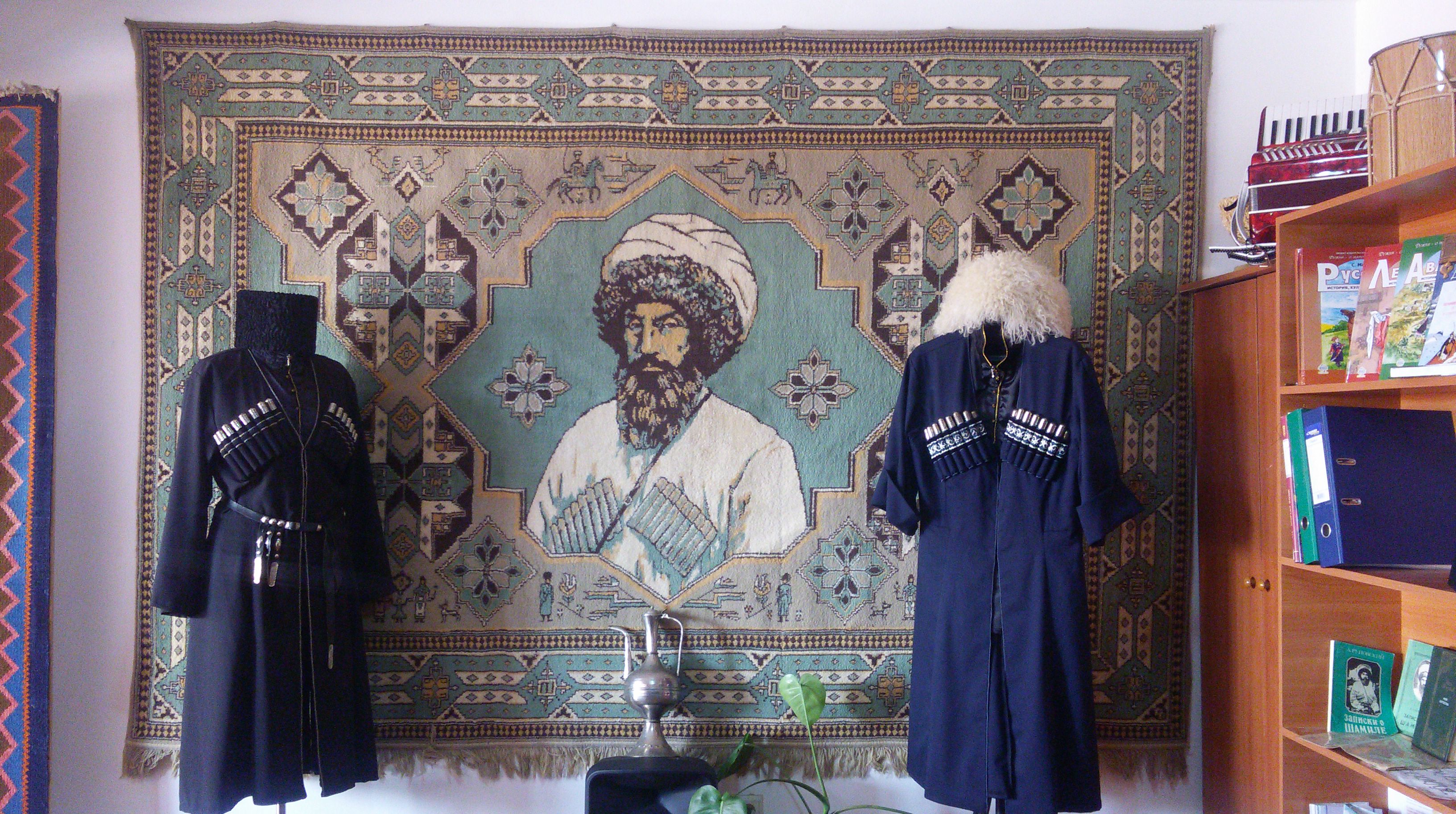 Но этот год тоже начался с уникального подарка. Директор межпоселенческого культурно-досугового центра района Каримула Абдулаев подарил Центру традиционной культуры народов России ковер с изображением Имама Шамиля.