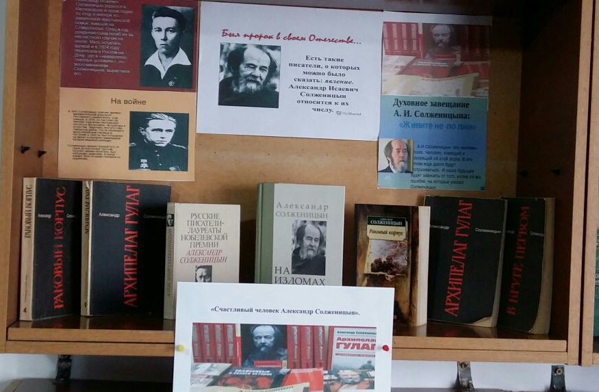 В районной централизованной библиотеке оформлена книжная выставка «Счастливый человек Александр Солженицын». Она приурочена к 100-летию писателя.