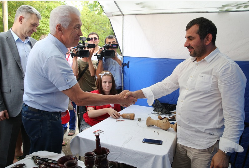 В ходе визита руководитель региона осмотрел территорию форума, посетил воссозданный здесь «Аул мастеров», где ознакомился с народными художественными промыслами Дагестана. На творческой площадке не только демонстрировалась продукция народных промыслов, но и проводились мастер-классы.
