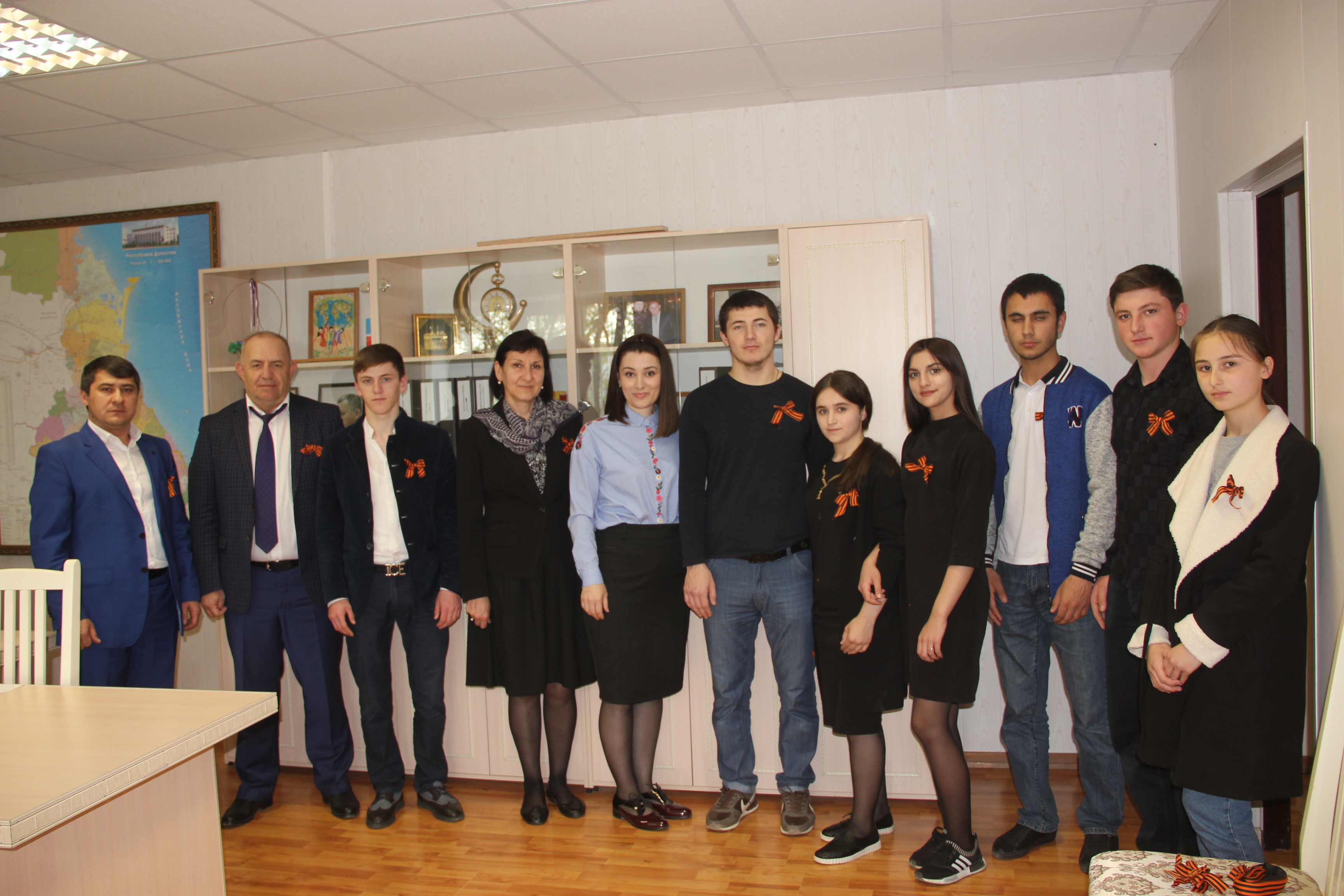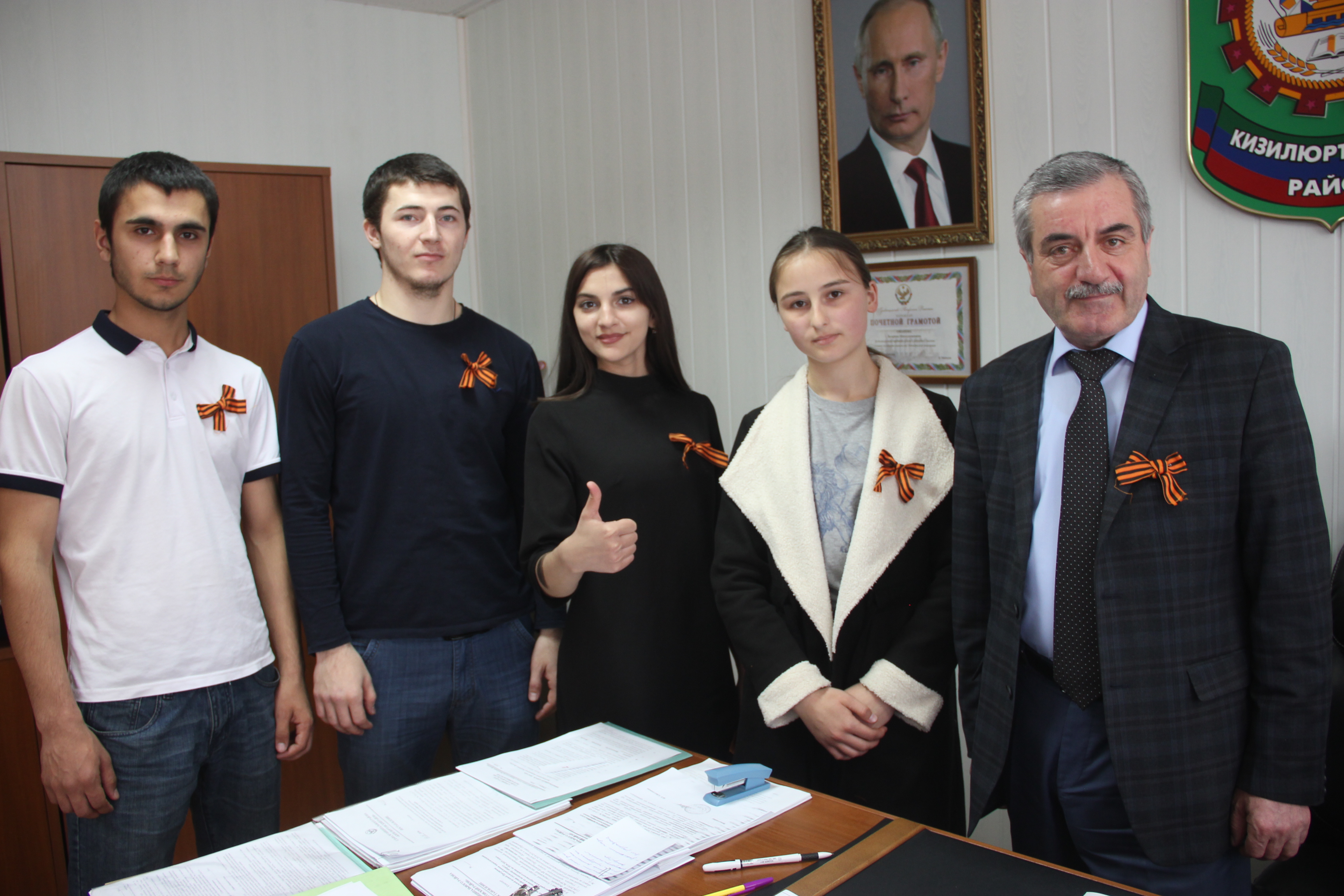 24 апреля волонтеры Кизилюртовского района присоединились к Всероссийской акции "Георгиевская лента". Раздача символа Дня Победы началась на многолюдной оживленной трассе около районной администрации и продолжилась в кабинетах муниципальных служащих. После чего ребята направились к парковой зоне у администрации города Кизилюрта, раздавая ленты прохожим.