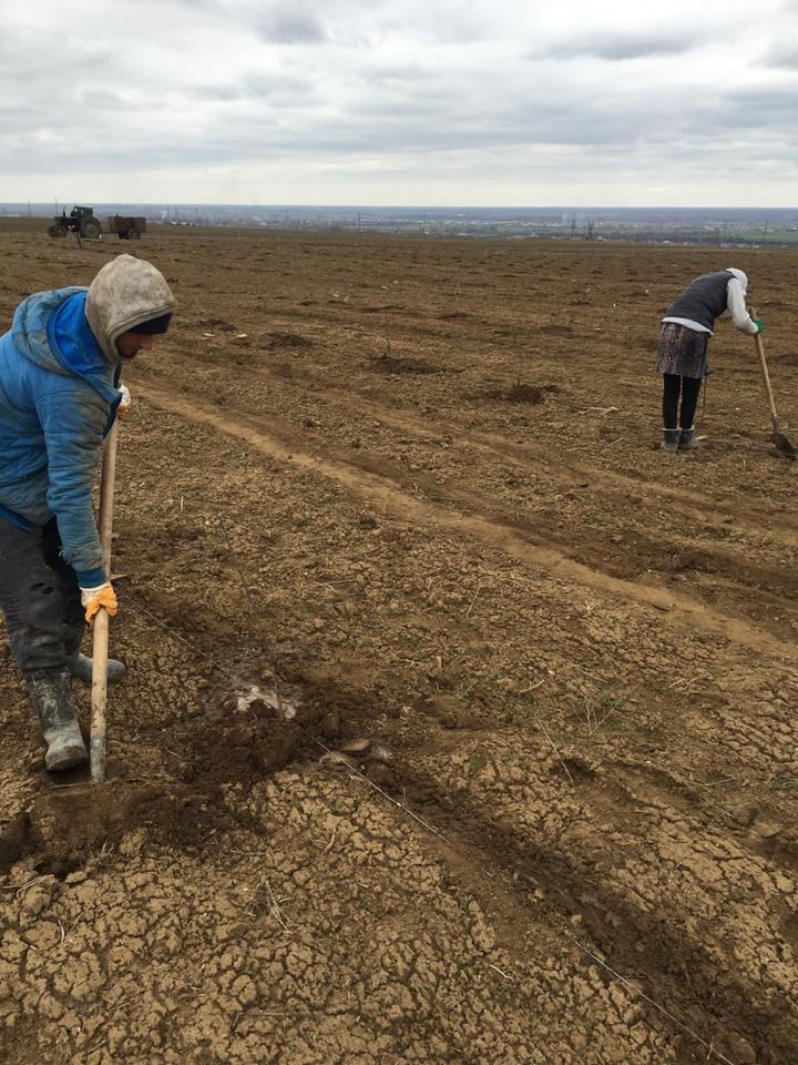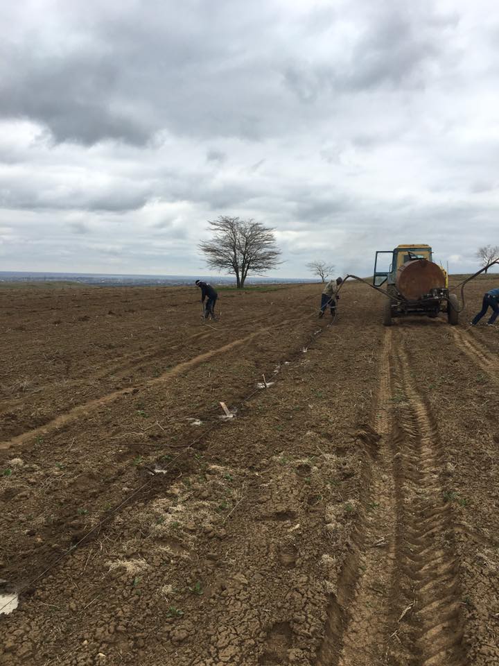 Шарип Шарипов отметил у себя: «Добротный посадочный материал четырёх сортов завезён из Молдовы, агроном с большим стажем работы в этой стране сумел выстроить правильную тактику агрономических мероприятий. Посадка осуществляется полумеханизированным методом (схожим с закладкой виноградников), когда выполняются одновременно три технологические операции - формирование лунки, посадка и полив».