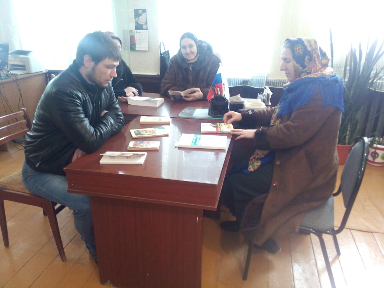 Магомедова познакомила гостей с литературой, представленной на тематической выставке, и рассказала о Конституции Российской Федерации.