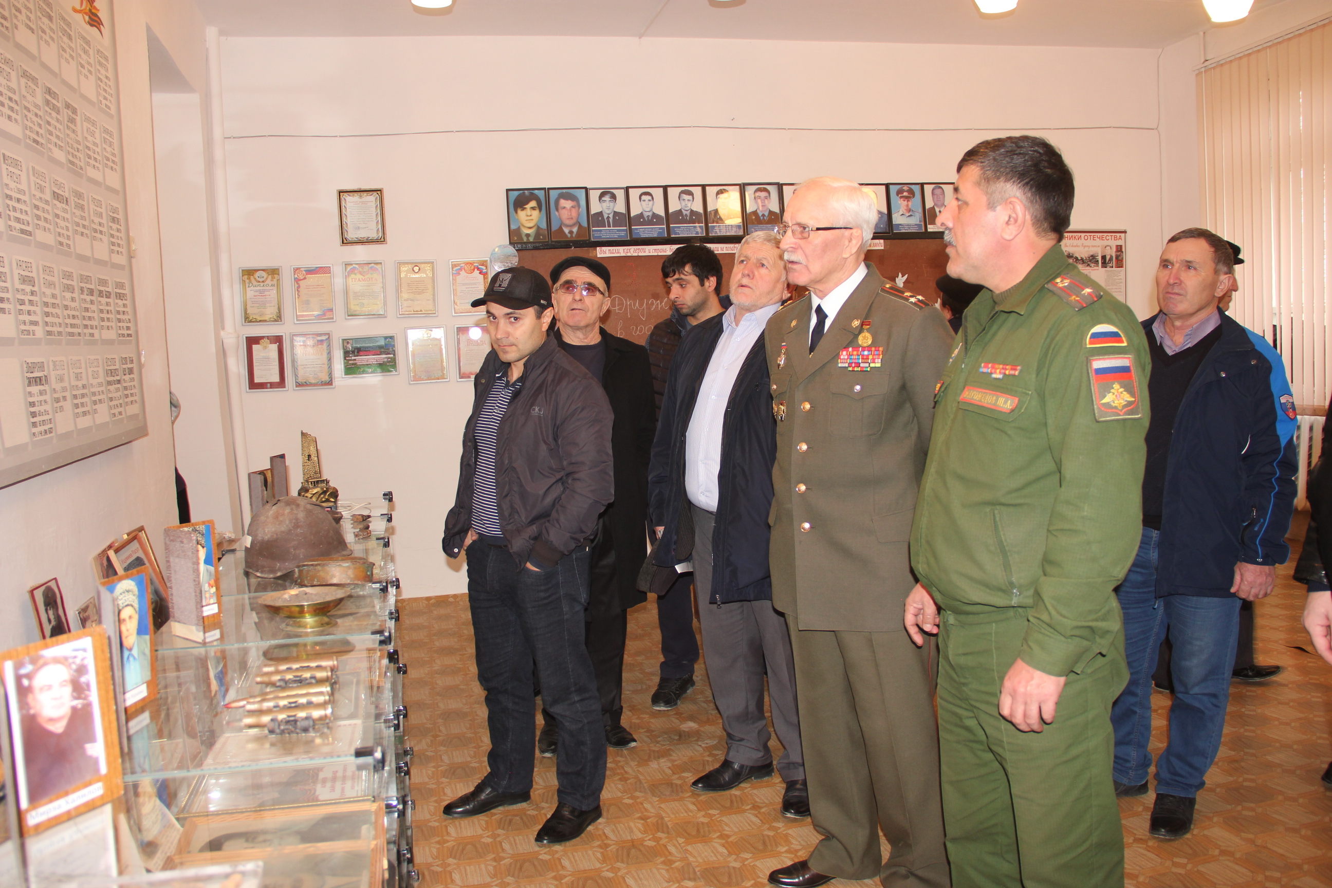 Далее делегация гостей посетила школьный зал боевой славы, музей, где выставлены экспонаты военной тематики.
