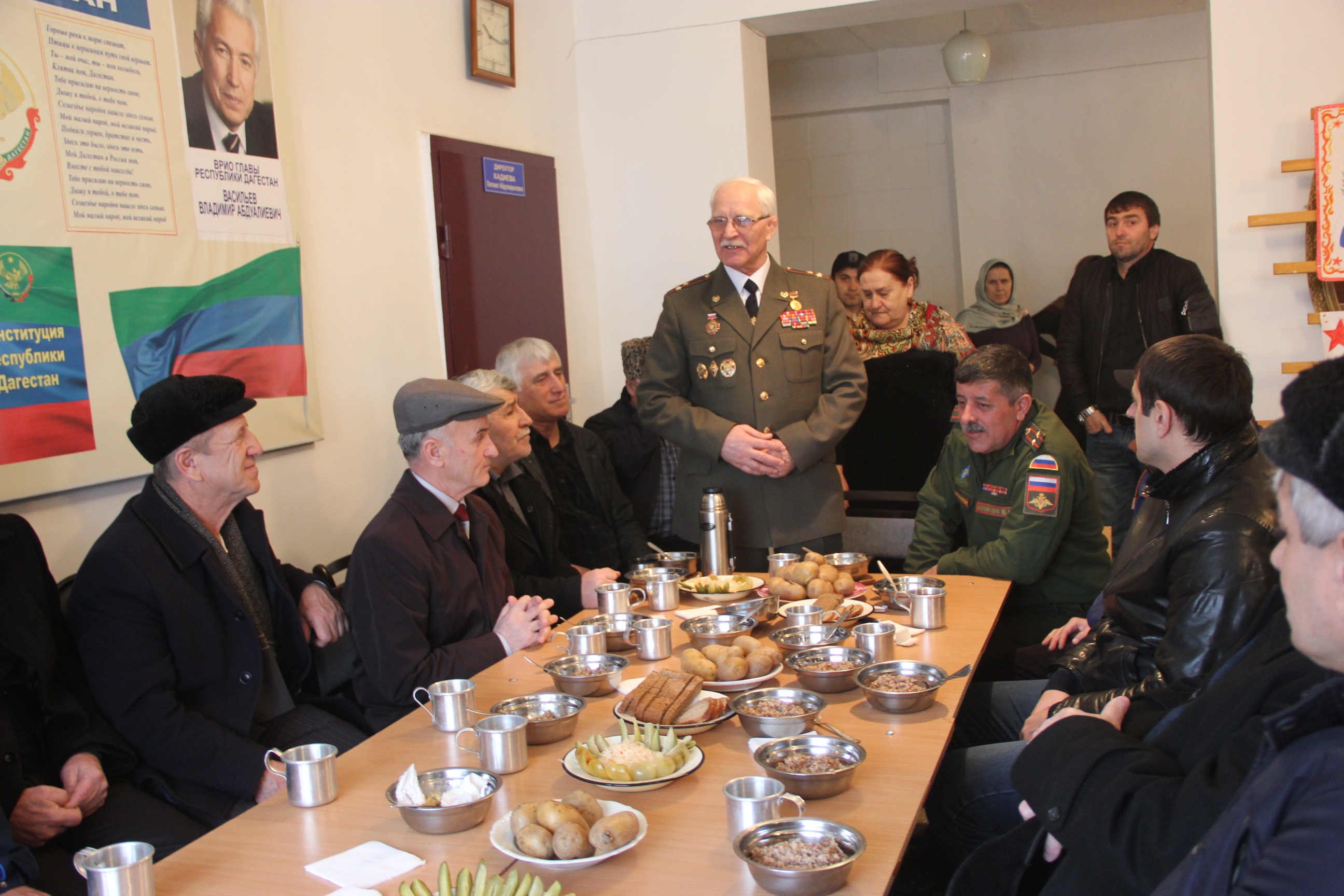Завершилось мероприятие просмотром фильма о вручении Боевого Знамени. Шарудин Магомедалиев подробно рассказал историю водружения Знамени на крыше здания рейхстага в Берлине, как официального символа Победы советского народа и его Вооружённых Сил над фашистской Германией в Великой Отечественной войне.